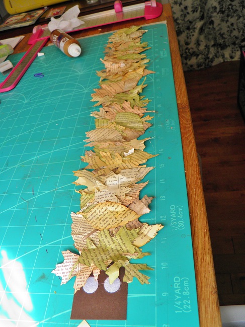 Now for the fun part - adding the leaves.  I used liquid glue, adding a few inches at a time.